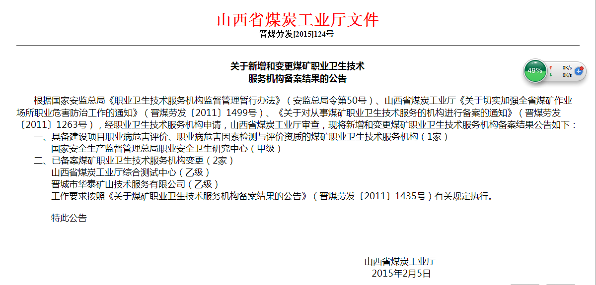 山西晉煤集團(tuán)沁水胡底煤業(yè)有限公司 職業(yè)病 09-15